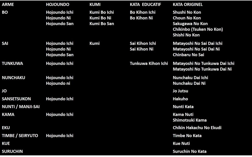 Il existe 28 armes dans le kobudo traditionnel d'Okinawa. Voici un aperçu des 14 armes les plus pratiquées.
